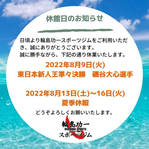 日頃より輪島功一スポーツジムをご利用いただき、誠にありがとうございます。