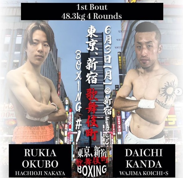 ライトフライ級、神田大地のデビュー戦が決まりました。相手は八王子中屋ボクシングジム所属、大久保るきあ選手。共にこの試合がプロデビュー戦。しっかりと準備します。▫️日付 6月3日(月)▫️時間 18:00開始予定▫️場所 新宿FACE▫️興行 新宿歌舞伎町boxing